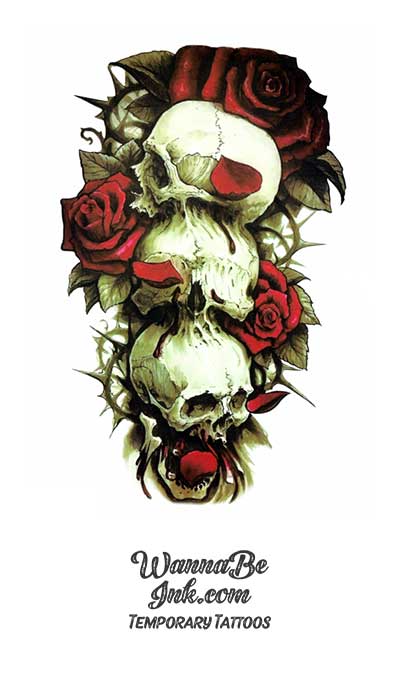 3 Skulls With Roses Best Temporary Tattoos Wannabeink Com